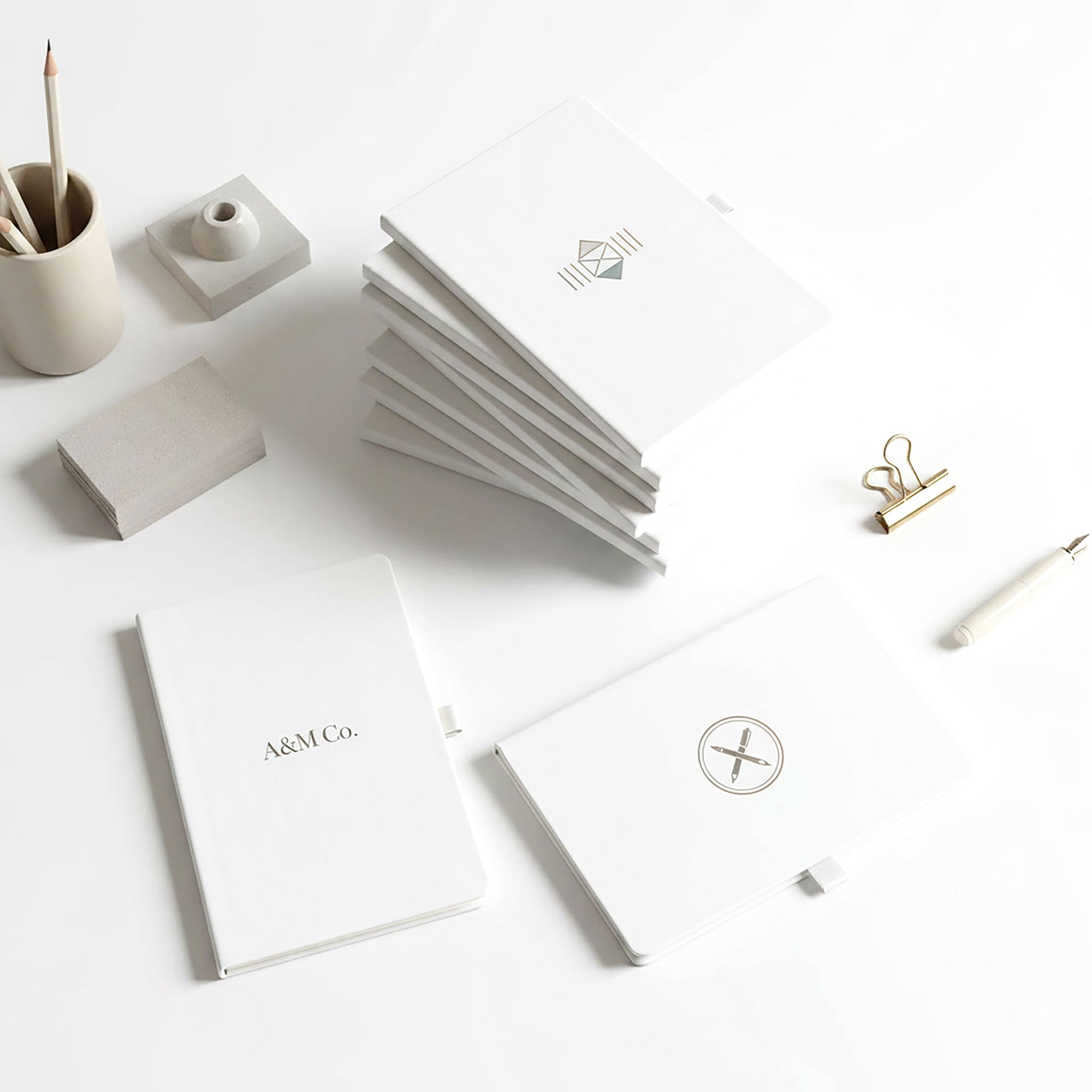 Introducing our high-quality white notepad/journal, now available with custom logo printing. Our lined notebooks feature a modern design and expert craftsmanship for easy note-taking. Our advanced UV printing technology ensures a vibrant, sharp, and long-lasting logo design. Ideal for personal or professional use, our notepad is durable and conveniently sized, making it a great gift. Invest in our premium quality notepad today and elevate your note-taking game! Shop now for custom printed notepads with your logo design.