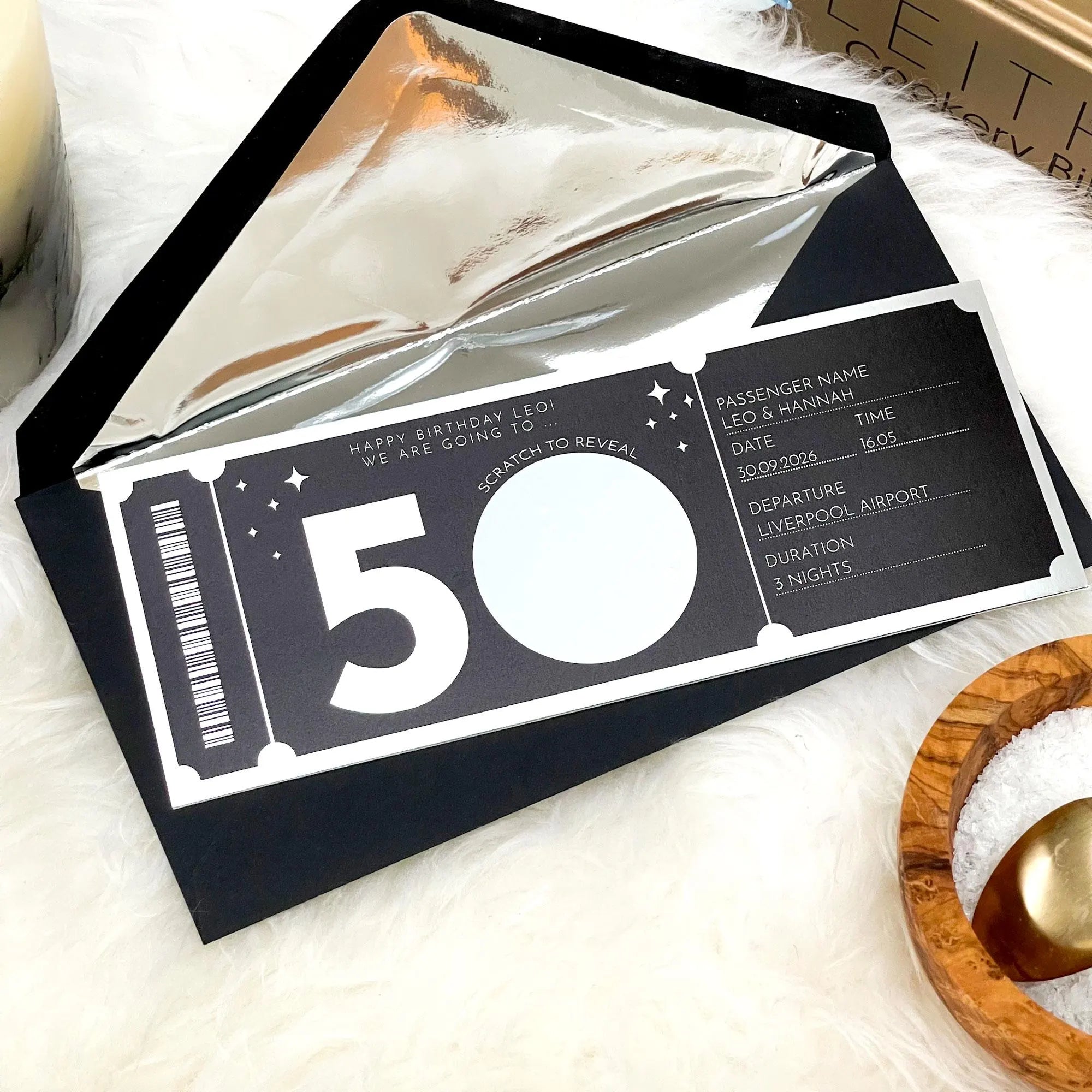 Mark a any birthday in unforgettable style with these luxury gold or silver keepsake tickets, designed to turn a special trip into a moment they’ll never forget. Beautifully printed on genuine Italian gold or silver paper, each ticket features a scratch-reveal panel, hiding the surprise city or country destination beneath — adding excitement, anticipation, and a little bit of magic to the gift-giving moment.