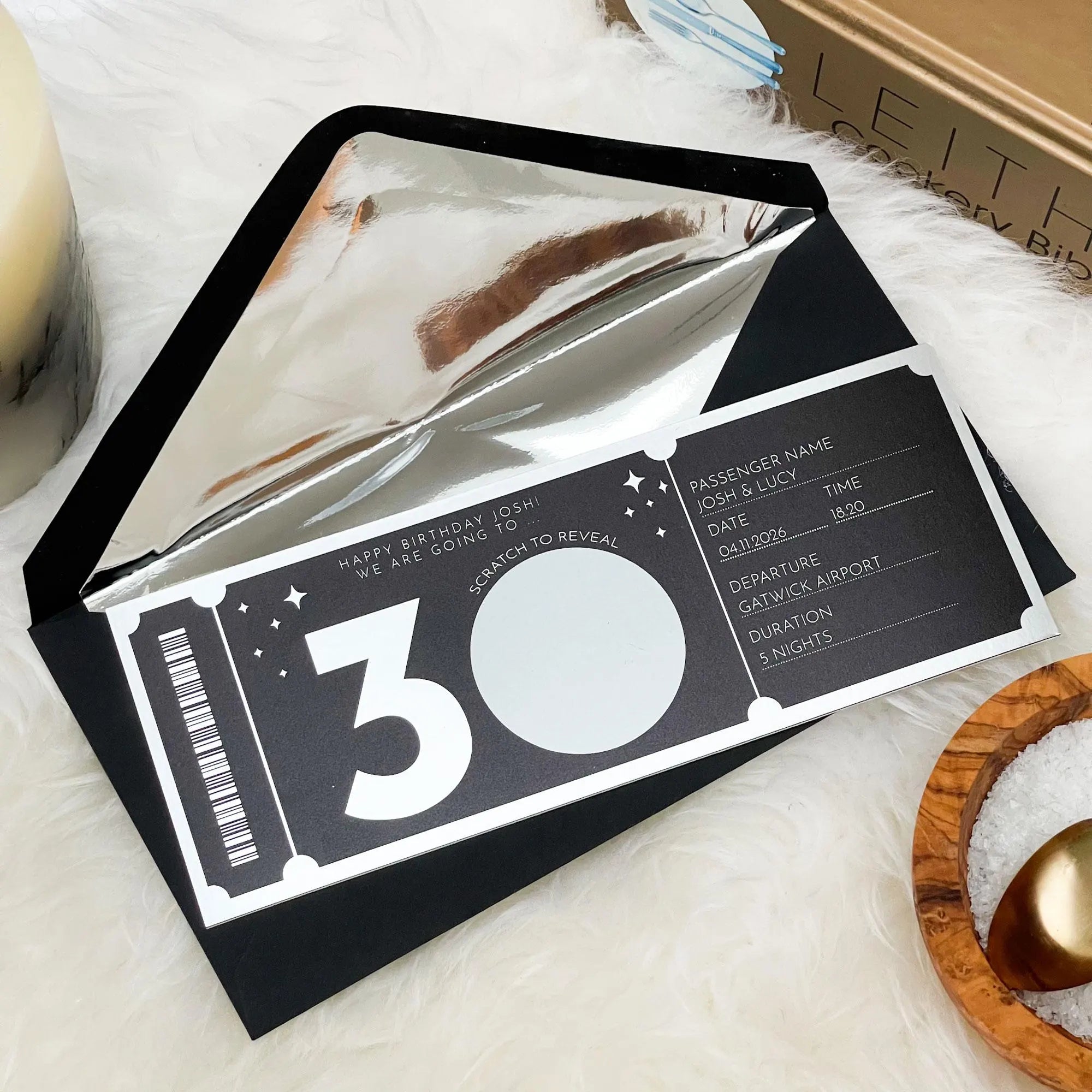 Personalised with all the details needed to make this a special surprise they'll never forget, these decorative tickets are designed to be kept long after the trip itself. Perfect for 20th, 30th 40th, 50th 60th, even 100th birthdays, landmark celebrations, anniversaries, for those once-in-a-lifetime getaways, they’re a glamorous and memorable way to reveal what’s next — and make the milestone feel truly special.
