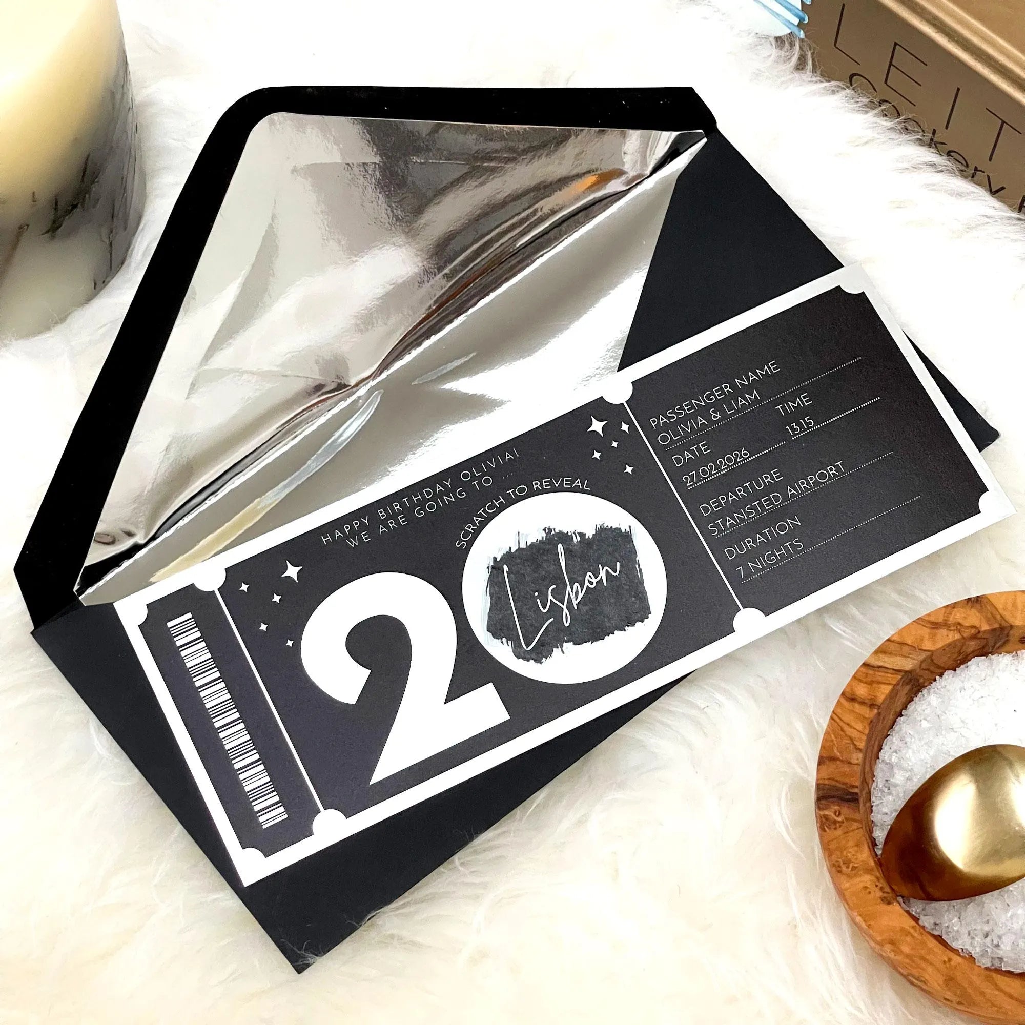 Personalised Gold or Silver 20th Birthday Travel Scratch Ticket