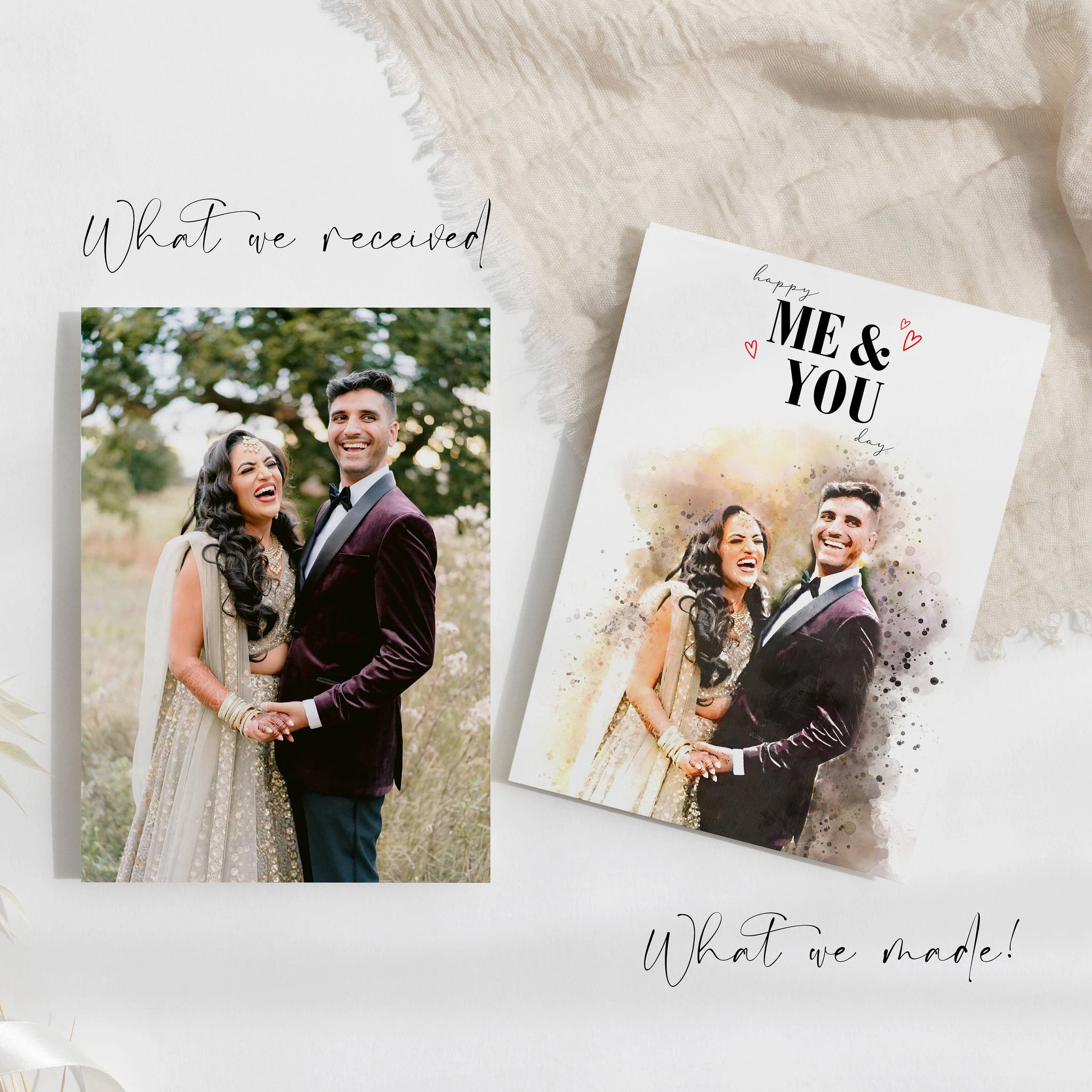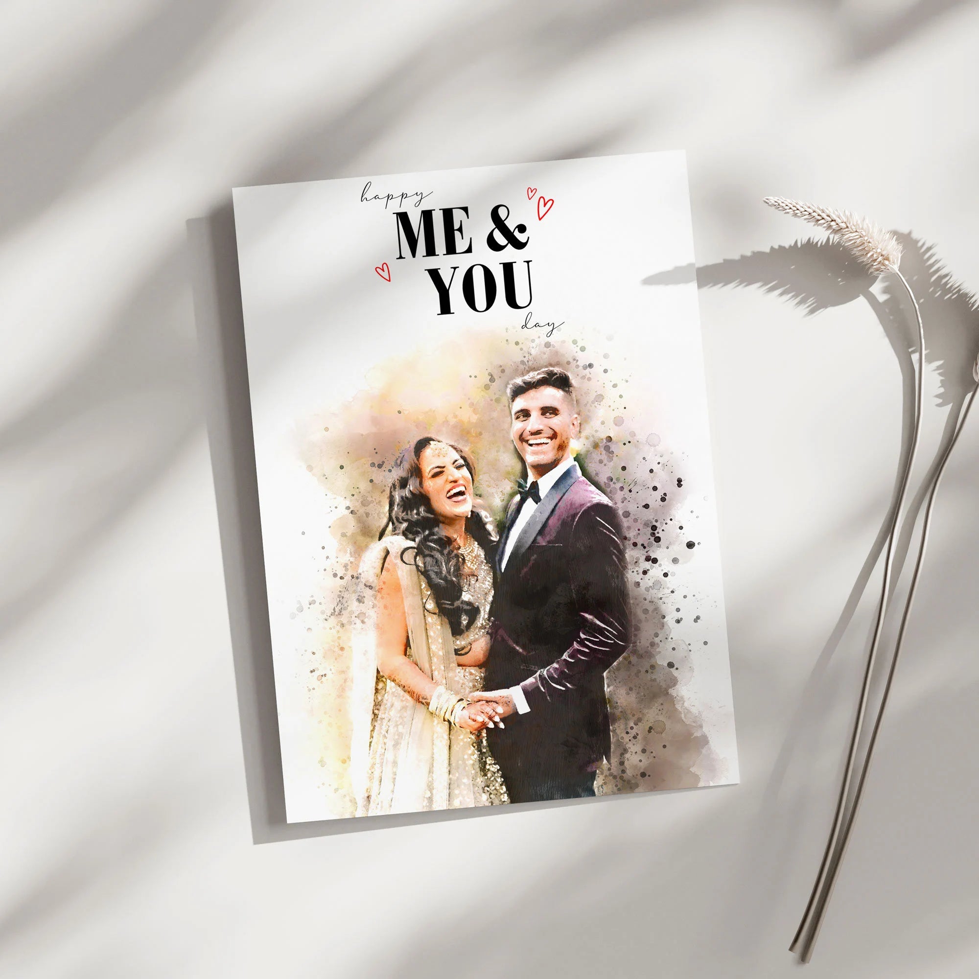 Celebrate special life moments with our one-of-a-kind Custom Personalised Watercolour Anniversary Card, a bespoke masterpiece crafted just for you! Transform a cherished photo into a stunning watercolour painting, skillfully created by our talented graphic artists. Whether it’s a wedding photo, holiday snap, family outing, or festival picture, we can turn any photo into a unique work of art. Beyond just a greeting, this personalised anniversary card becomes a cherished keepsake, preserving a special moment or exciting chapter in a beautiful, artistic way.
